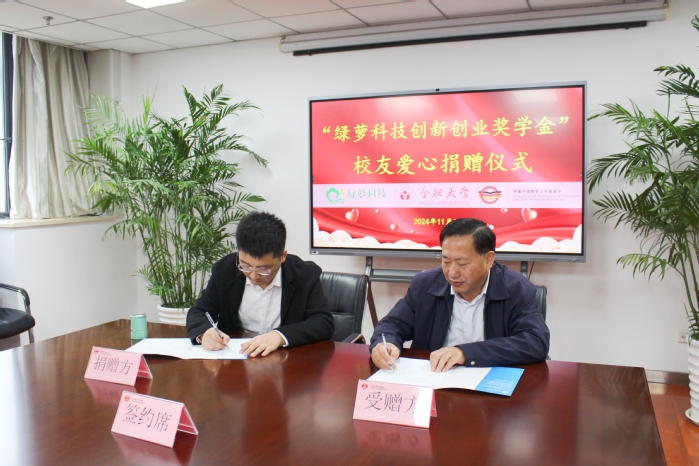 我校举行“绿萝科技创新创业奖学金”校友爱心捐赠仪式