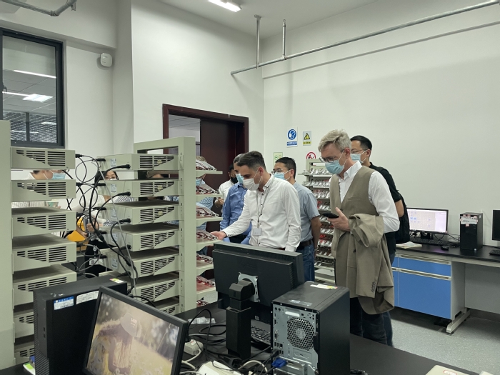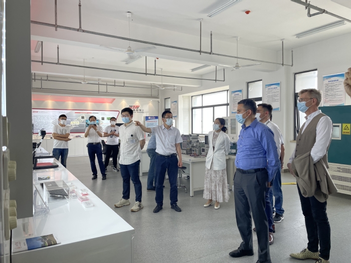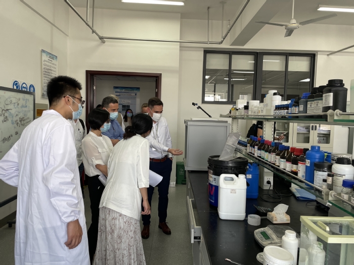Die Expertengruppe besuchte zunächst das technische Forschungszentrum der Universität Hefei und besichtigte daraufhin das Anhui Green Coating High Performance Auxiliary Engineering Research Centre, das Key Laboratory of Advanced Battery Key Materials and Technology und das Anhui Modern Electronic Control and Testing Application Technology Collaborative Innovation Centre, um über das gemeinsam von der Universität und den Unternehmen aufgebaute Forschungszentrum zu beraten.