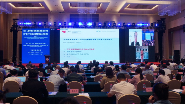 Prof. Dr. Hendrik Lackner, Dekan des Hochschulzentrums China (HZC) der Hochschule Osnabrück erläuterte das duale Ausbildungsmodell unter den Gesichtspunkten der anwendungsorientierten Hochschulbildung und der dualen Hochschulbildung, der jüngsten Entwicklung in Deutschland und der einschlägigen Erfahrungen anhand von Fallstudien. Er sagte, dass die Entwicklung der Unternehmen eine große Anzahl qualifizierter anwendungsorientierter Talente benötige und die Ausbildung von Talenten an den Hochschulen eng mit den Bedürfnissen der Unternehmen verbunden werden solle, und das duale System neue Möglichkeiten für die Entwicklung der Hochschulen biete.