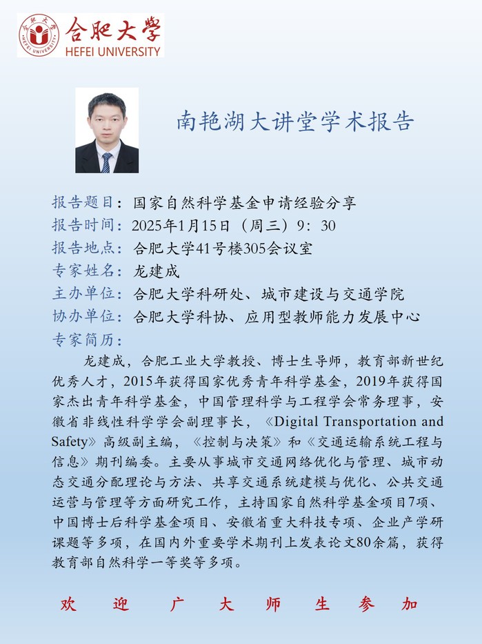 【南艳湖大讲堂】国家自然科学基金申请经验分享