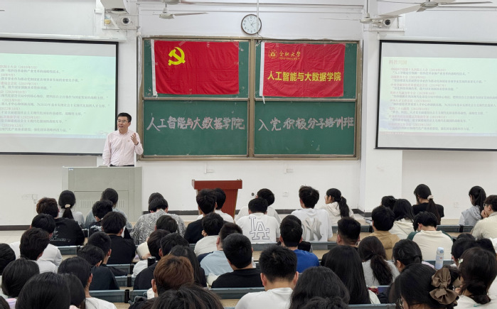 4月17日,党委副书记、校长任永以《传承校史精神 勇担时代使命》为题给人工智能与大数据学院入党积极分子培训班学员们上了一堂精彩的党课。