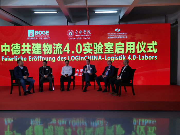 11月15日,中德共建物流4.0实验室落成暨启用仪式在我校产学研大楼顺利举行。合肥学院党委书记、校长王其东出席仪式,德国奥斯纳布吕克应用科学大学教授、中德合作物流管理专业项目负责人米歇尔•舒勒,安徽大学党委书记蔡敬民,海口经济学院校长陈啸,中国科学技术大学管理学院丁斌教授,博戈公司总经理福莱穆勒,德国人工智能研究所高级研究员亨利•歌思林博士等70余名专家及企业代表参加。本次仪式由合肥学院经济与管理学院院长陈江华主持。