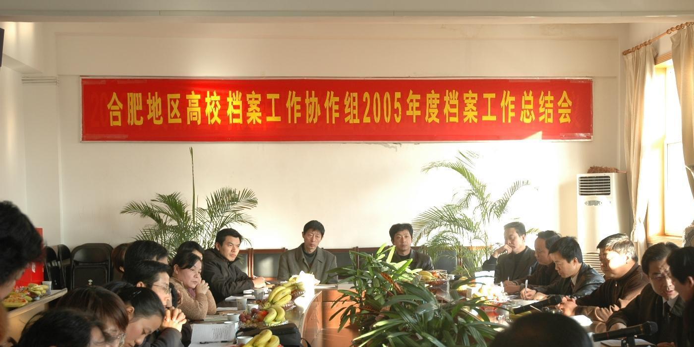 与会人员就本单位年度工作做了交流,决定由科大等4所高校牵头筹建省高校档案学会。按省档案局评优评先工作要求,会议选举安大综合档案室、科大档案馆、中医学院综合档案室为2005年度档案工作先进单位。