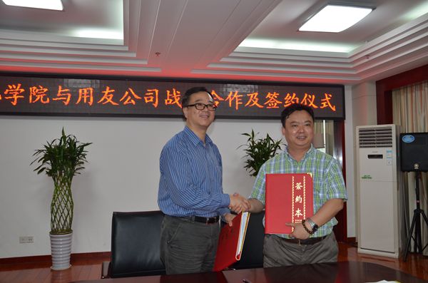 5月8日上午,用友公司副总裁周前进、高级顾问宋国荣、安徽分公司总经理李珊珊等一行来我校交流访问,我校党委副书记丁明,副校长刘建中在行政楼九楼东会议室热情接待了来宾,双方就开展产学研战略合作及支持合肥学院“经营管理企业情境化(企业化)实验实训中心”建设进行了深入会谈并签订战略合作协议,校有关部门及管理系负责人参加了交流会。