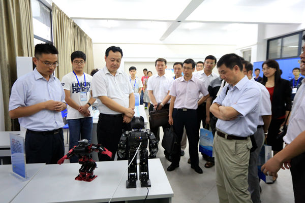 全国各省教育厅高教处处长在合肥学院校领导的陪同下,参观了艺术设计系安徽深装合大工业设计有限公司、电子信息与电气工程系电子爱好者协会大学生工程实践与创新教育中心以及计算机科学与技术系创新实验室。