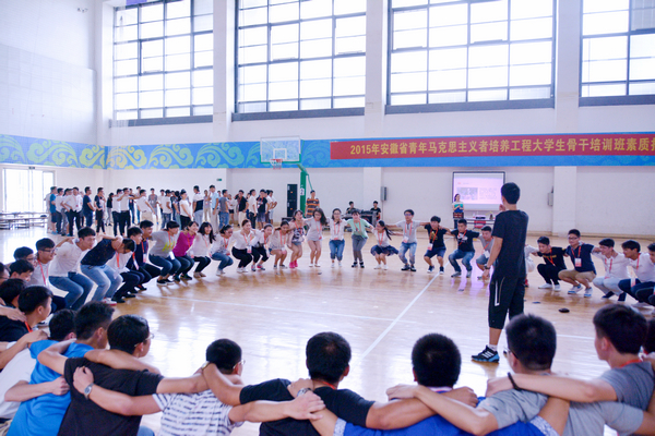 据悉,此次活动汇集了来自安徽省的106所高校的246名大学生骨干,培训活动共持续5天时间。期间,培训班学院将通过邀请专家学者课堂讲授、学员自学、团体辅导、素质拓展相结合的方式,加强彼此间的交流,进一步提高自身思想认识。另悉,24日,学员们齐聚在体育馆积极参与素质拓展,以小班形式陆续开展了形式多样的班级介绍、个人才艺、团队特色等活动,打破学校之间、学员之间无形的坚冰,彰显出各校学生骨干的青春风采。五个班的青马工程学员在各班主任的组织下召开了主题班会,完成了班干竞选,各班学员表现积极,发言踊跃,班级气氛融洽。