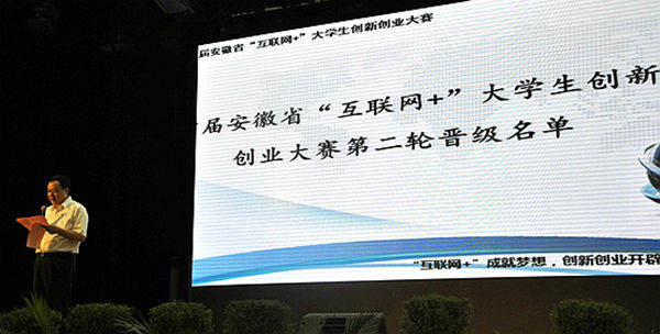 8月25日,由安徽省教育厅主办,合肥工业大学和合肥学院共同承办的首届安徽省“互联网+”大学生创新创业大赛创新创业教育培训及比赛第二轮晋级团队揭晓仪式在合肥工业大学屯溪路校区斛兵礼堂举行。大赛组委会裁判委员会主任、合肥学院党委书记蔡敬民教授宣读了晋级省总决赛现场答辩队伍名单。