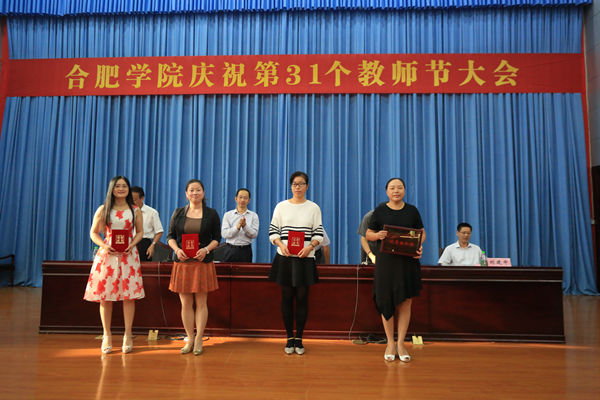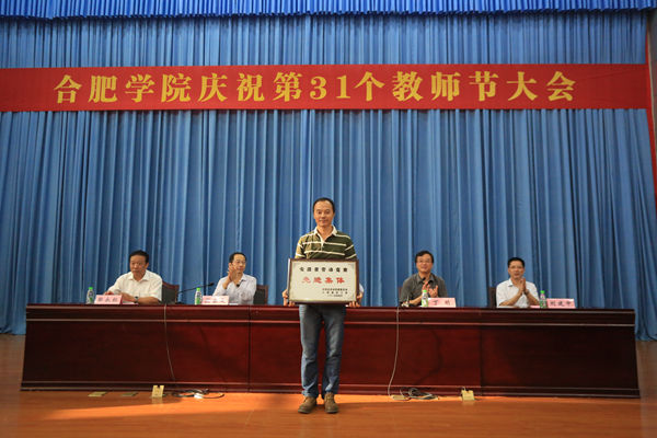 洪家友宣读表彰文件。他指出,在过去的一年中,我校教师获得了 “研究生课堂教学优秀教师、硕士研究生优秀导师、教学管理先进个人、教学管理先进集体、合肥市教育系系统先进集体和优秀教师、安徽省劳动竞赛先进集体”等多项荣誉称号,教学成绩显著。张文兵等校领导为获奖集体和优秀教师代表颁奖。