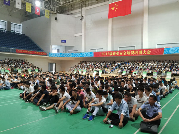 今年我校新生安全教育就专门邀请经开区锦绣派出所、莲花派出所,合肥市电梯行业协会的专家就防火、防盗、防诈骗及电梯使用安全等内容开展安全教育,新生安全法制教育向着专业化、专家化的方向迈进。专题培训在校体育馆举行,全校4500余名新生分批次参加培训,培训会由学生处副处长纪平主持。