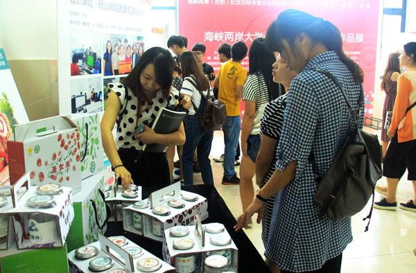 展示现场,灵璧县良林家禽中华第一蛋包装设计、砀山县徽韵家庭农场系列蔬菜包装设计、砀山县红卫家庭农场车厘子包装设计等一系列优秀作品,在让现场专家惊叹之余,也体现出了当代90后大学生独特的创新思维,更是折射出了两岸文化在艺术设计上的共通与融合。