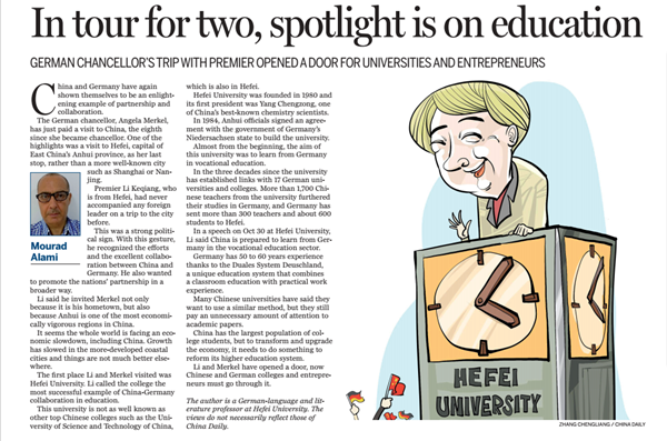 合肥学院德国专家:中德总理访问合肥,教育合作成焦点 中国日报欧洲版 2015年11月6日