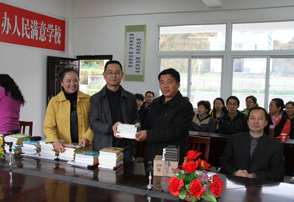 117日,大家首先赶赴金寨县吴家店镇包畈中心小学开展慰问助学活动。座谈会上,包畈小学宋旺胜校长对合肥民盟与无党派知联会一行前来开展慰问助学活动表示感谢,并向大家介绍了学校发展情况及办学成果。合肥学院总支主委胡雁玲代表大家向坚守在大山里的教职员工表示慰问和敬意,现场向包畈小学的全体老师赠送了移动硬盘,生物系教授陈群副会长代表合肥学院无党派知联会向包畈小学赠送了价值千余元的图书。同时,何峰教授与吴莺莺老师也分别捐赠了图书。会场热闹的气氛驱散了深秋的寒意。会后宋校长带领大家参观了校舍、图书室、多媒体教室等校园设施。