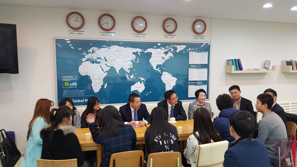 访问顺天乡大学期间,张文兵与顺天乡大学总长徐教一等举行了会谈;出席了由我校主办、顺天乡大学承办的第一届“合肥学院杯”汉语演讲大赛决赛并为获奖选手颁奖;在金学民副总长陪同下参观了顺天乡大学技术与创新中心、化妆品检测中心、孔子学院等处;与我校“2+2”专业学生进行了座谈。