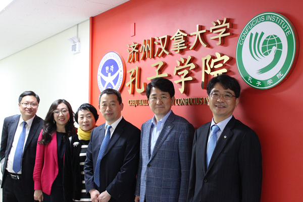 访问济州汉拿大学期间,张文兵与该校总长金星勋商定双方在现有学生交流基础上扩大规模,特别是在电子、机械、3D打印等产业领域开展交流;参观了汉拿大学观光经营系产学中心、孔子学院及汉拿大学幼儿园;看望了我校赴该校执教老师及“1.5+1.5”专业学生,与他们就学习深造、个人创业等问题进行了深入交流。