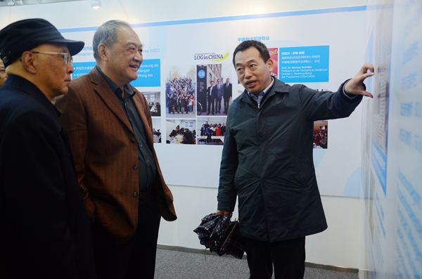 会前,国家教育咨询委员会调研组在张文兵等陪同下参观我校中德合作共建30周年成果展。