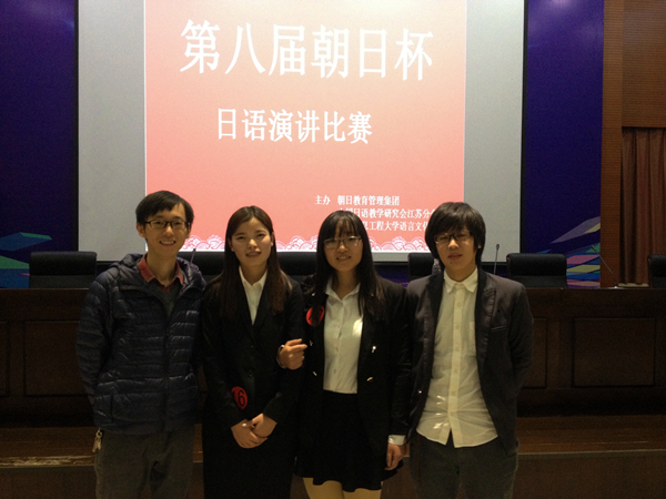 11月14日,第八届朝日杯华东区日语演讲大赛在南京信息工程大学举行,我校外语系2012级日语班王雪妮同学荣获大赛三等奖,2013级日语班黄倩倩同学获得了优秀奖。