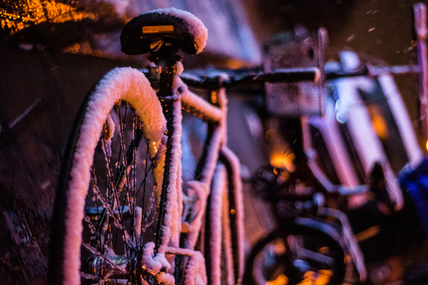 落雪半掩的脚印是一群群刚下晚自习匆匆而归的学子们留下的。走在返回宿舍的校园梧桐大道旁、天桥上时,望着满天散落的雪花,不由地伸手触碰这自在飘飞的冰之精灵,看着它在指尖化为水滴的那一刻,经过一天学习后紧张的心情也随之消解了。冰冷的单车静静地立于道旁,似在诉说着冬的故事。晚自习后一行同学说说笑笑相伴而归,天虽寒冷,心却是暖暖的。
