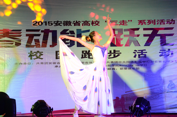 11月28日晚,我校二区风雨门球场乐声阵阵,热闹非凡。由共青团安徽省委员会、安徽省体育局、共青团中央网络影视中心和安徽省学生联合会主办,合肥学院团委及Morning up学社承办的校园跑步活动开幕式晚会成功举办。我校团委副书记杜娟、Morning up学社指导老师谢广平等应邀出席,近两百余名学生参与晚会。