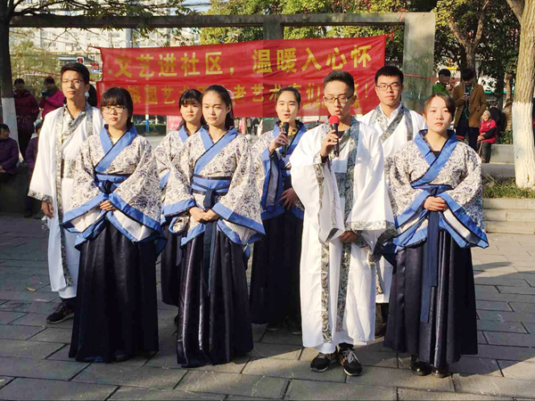 为了弘扬 “奉献、友爱、互助、进步”的志愿精神,在校团委和青年志愿者联合会的号召下,我校各系志愿者服务队相继开展了以“感恩、感动、感激、回报”为主题的艺术进社区系列活动。