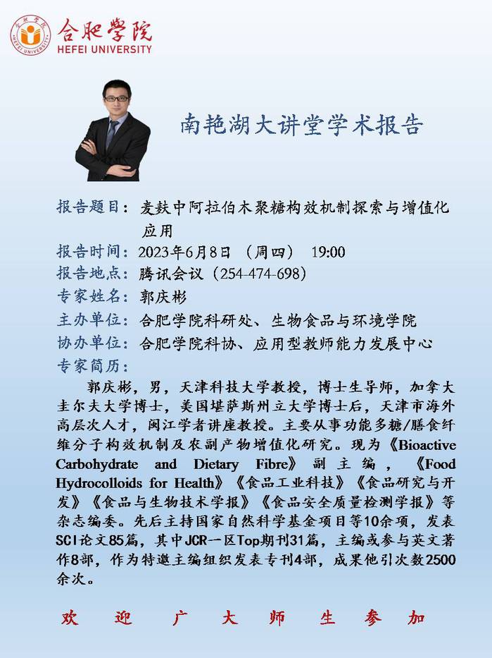【讲座预告】麦麸中阿拉伯木聚糖构效机制探索与增值化应用