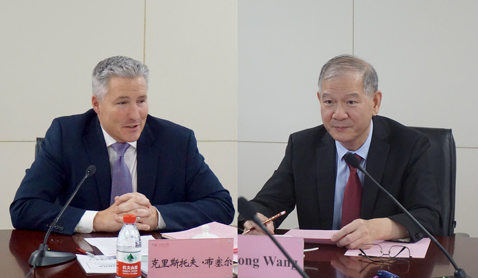 克里斯托弗·大卫·布塞尔介绍了德比大学的优势学科与专业。他表示,德比大学非常重视与安徽省高校的合作,期待在现有合作基础上扩大与我省高校合作的广度与深度。