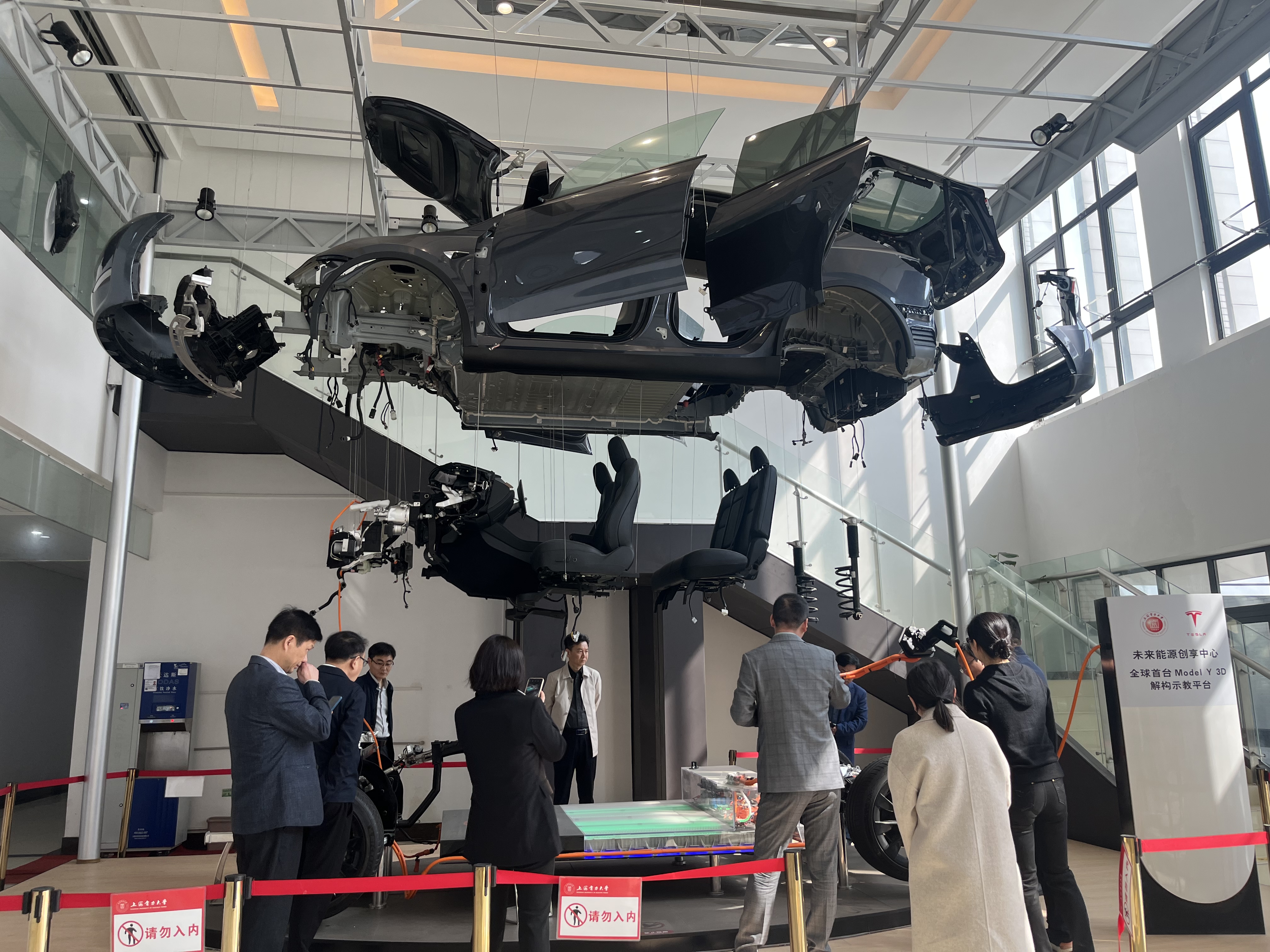 吴懋亮向联盟高校调研组的到来表示欢迎,并介绍了上海电力大学现代产业学院建设工作。张传林带领联盟高校调研组参观了上海电力大学特斯拉产业学院,就特斯拉产业学院的新能源汽车微专业建设情况进行了详细介绍。联盟高校调研组认真听取交流发言,双方就现代产业学院及微专业建设相关问题进行了深入交流。