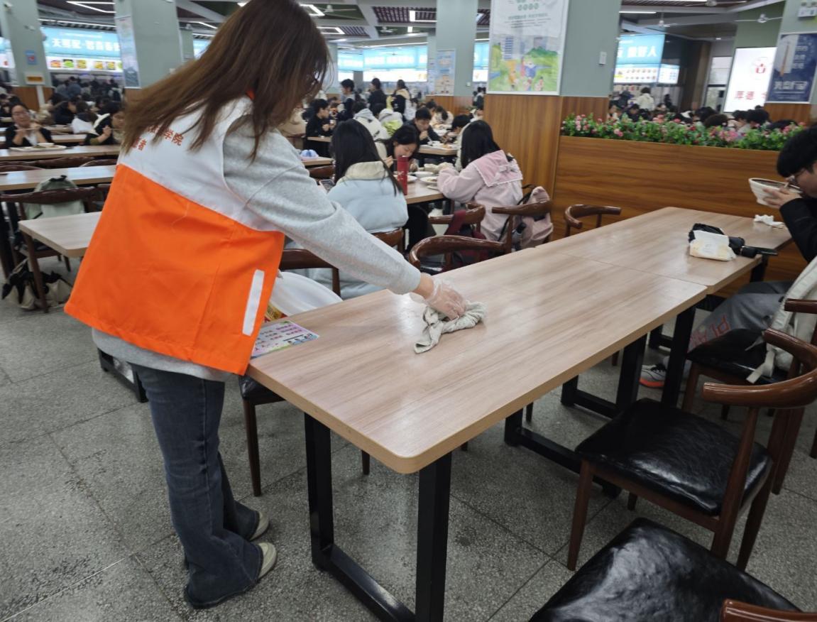 在整个活动过程中,志愿者们不怕脏、不怕累,以饱满的热情认真和高度的责任感对待每一项任务。他们的辛勤劳动使食堂环境焕然一新,为师生们营造了更加舒适、卫生的用餐环境。