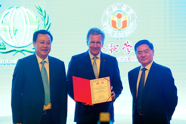 德国前总统、全球中小企业联盟全球主席武尔夫受聘合肥学院荣誉教授