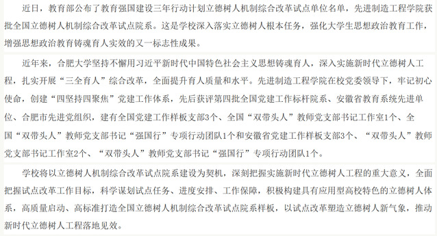先进制造工程学院获批教育部立德树人机制综合...