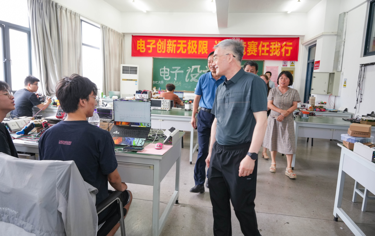 7月25日上午,校党委书记邬平川、校党委委员、副校长白义香一行冒着酷暑走访看望我院暑假期间留校参加学科竞赛的集训队师生。 在先进制造工程学院大学生工程实践与创新教育中心创新创业实训室、智能控制实训室,邬平川亲切看望了备赛2025年全国大学生电子设计竞赛、第二十届全国大学生智能车竞赛的指导教师及学生。 邬平川察看了电子爱好者协会学生科创竞赛开展情况,听取了电子爱好者协会比赛成果和创新模式、全国电子设计竞赛备赛状态、全国大学生智能车竞赛赛事准备等情况介绍,详细了解了暑期集训、参赛备赛情况及学习生活情况,观摩了备赛学生现场演示智能车赛道竞逐。 邬平川对师生不惧酷暑、辛勤付出、专心备赛给予了充分肯定,对第二课堂在创新创业教育中发挥的重要作用表示高度认可。他希望大家高度重视参赛机会,充分利用暑期宝贵时间,全力以赴、攻坚克难,在备赛中积累宝贵经验,在竞赛中提升综合素养,真正做到“以赛促学、以赛促训、以赛促教”,并叮嘱大家注意防暑降温,劳逸结合,平安备赛,勇创佳绩。 校党政办、学工部、后勤集团等相关职能部门及先进制造工程学院全体班子成员陪同调研。