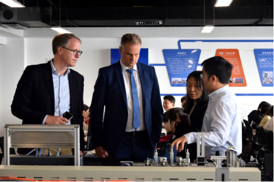 Accompanied by Wang Qidong, Alexander Schmemann and his delegation visited the Key Laboratory of Advanced Battery Materials and Technology at School of Energy Materials and Chemical Engineering, and Volkswagen Colleges School-enterprise Training Center and Practice Center and Industry-education Integration Platform Laboratory.