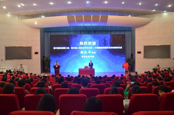 4月10日,为落实我校“中德教育合作示范基地及基金”的智库建设工作,促进安徽省与德国在教育、文化、科技、经贸领域的相互了解与合作,中国前驻德大使、中国人民外交学会前会长梅兆荣受邀访校并做“中德关系”主题演讲。本次主题演讲也是我校建设中的“中德教育合作示范基地及基金”的智库平台“中德大讲堂”的第一讲,讲座在图书馆报告A厅成功举办。