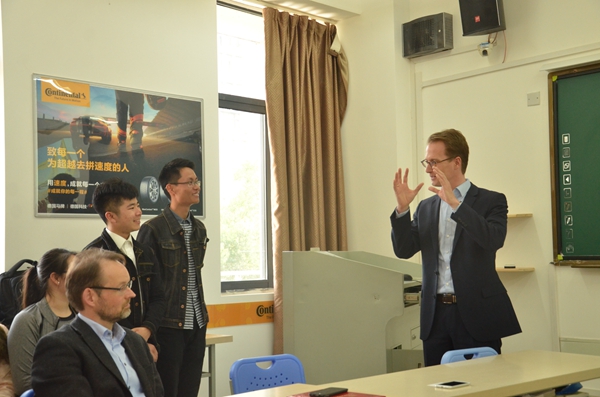 大陆公司一行人莅临大陆班学生教室与学生进行了交流。学生们从学习方式、能力的提升和课余活动经历等方面介绍了大陆班带给他们的全方面能力的提高,并为大陆班未来的发展提出了建议。Sven Carsten Lange在发言中说道,期待大陆班能够取得更好成绩。大陆班是以培养应用型人才为目标,有明确的目标在学生学习中是极为重要的。他向同学们介绍了去德国留学的要求,并鼓励他们保持热情,努力展示自己的才能。