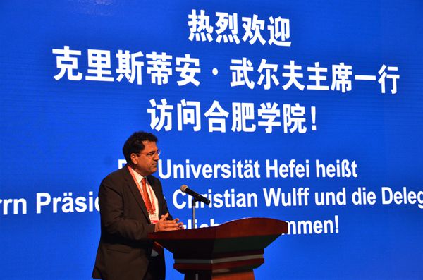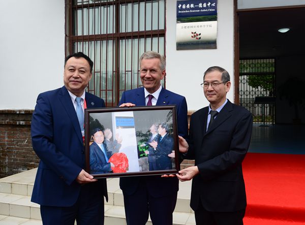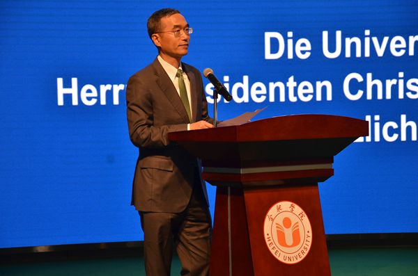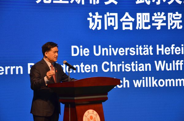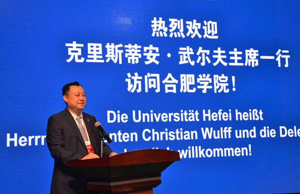 5月26日,德国前总统、全球中小企业联盟主席克里斯蒂安•武尔夫来访我校并出席中德先进制造业(合肥)合作促进中心、全球商会合作网基地、中德固体废弃物研究协同创新中心揭牌仪式。