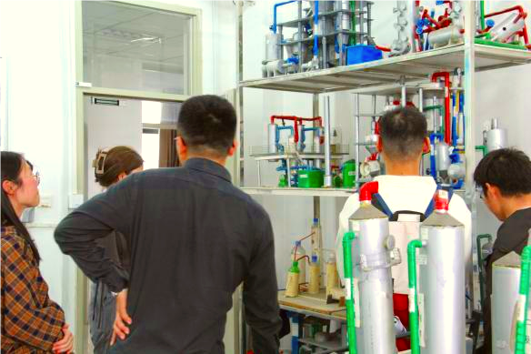 柏老师一行首先参观化工工程师之家的环境及制度,柏老师深情回忆在此学习、竞赛的点点滴滴,安徽大学的同学们也兴趣浓厚。