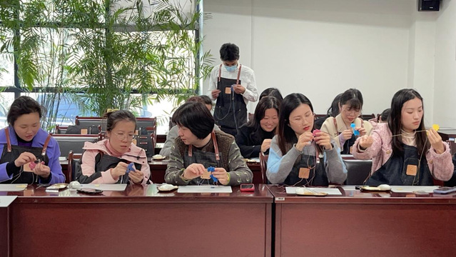 趣味生活,多彩熠熠。活动现场,手作老师先是讲解缝制方法和技巧,随后亲手展示缝制过程。女教师们在手作老师的指导下,开始动手缝制小鹿造型的手工皮具,边制作边交流心得和技巧,在愉悦的氛围中体会着手作乐趣和工匠精神内涵。