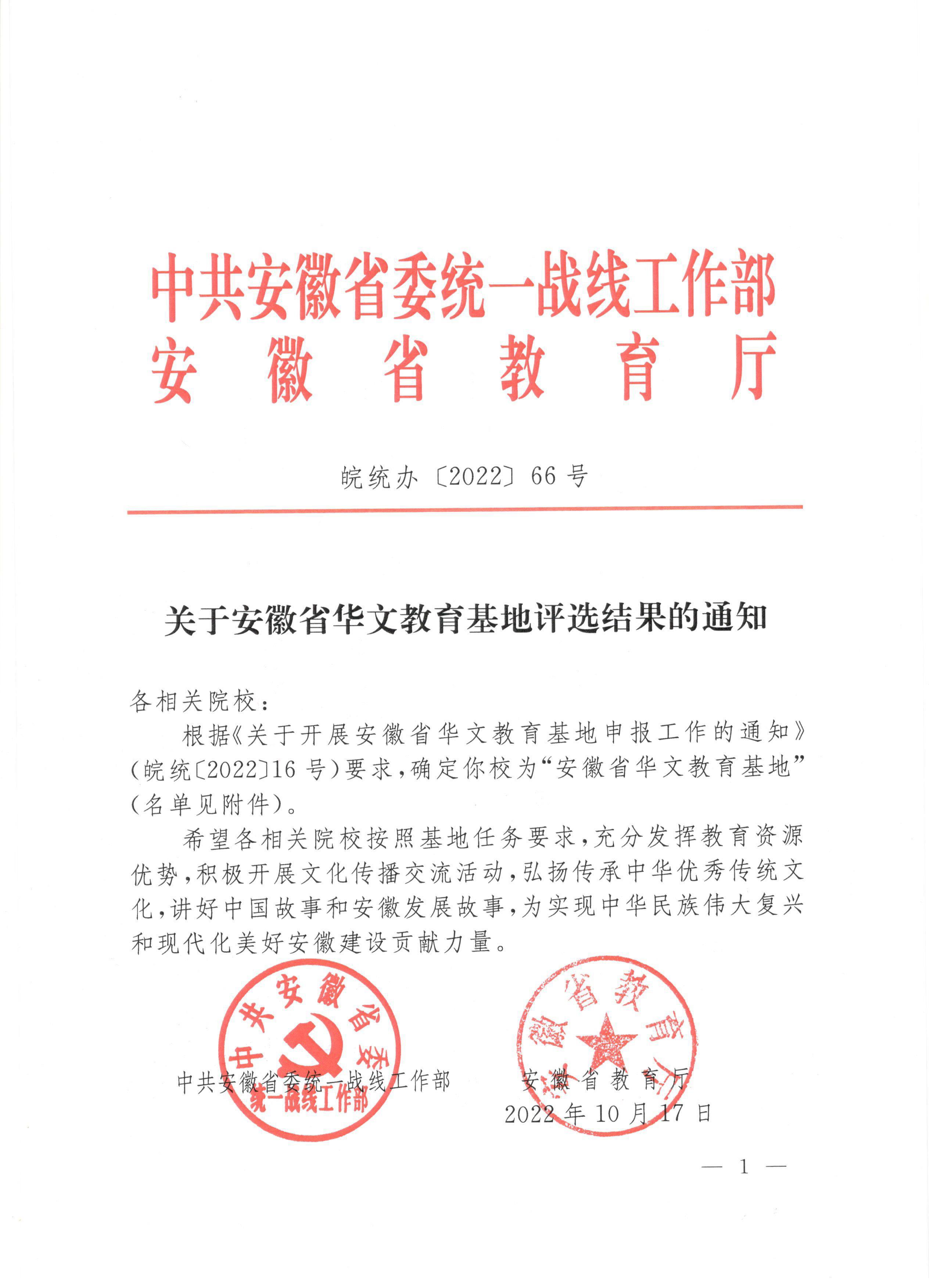 我校获批成为安徽省首批华文教育基地