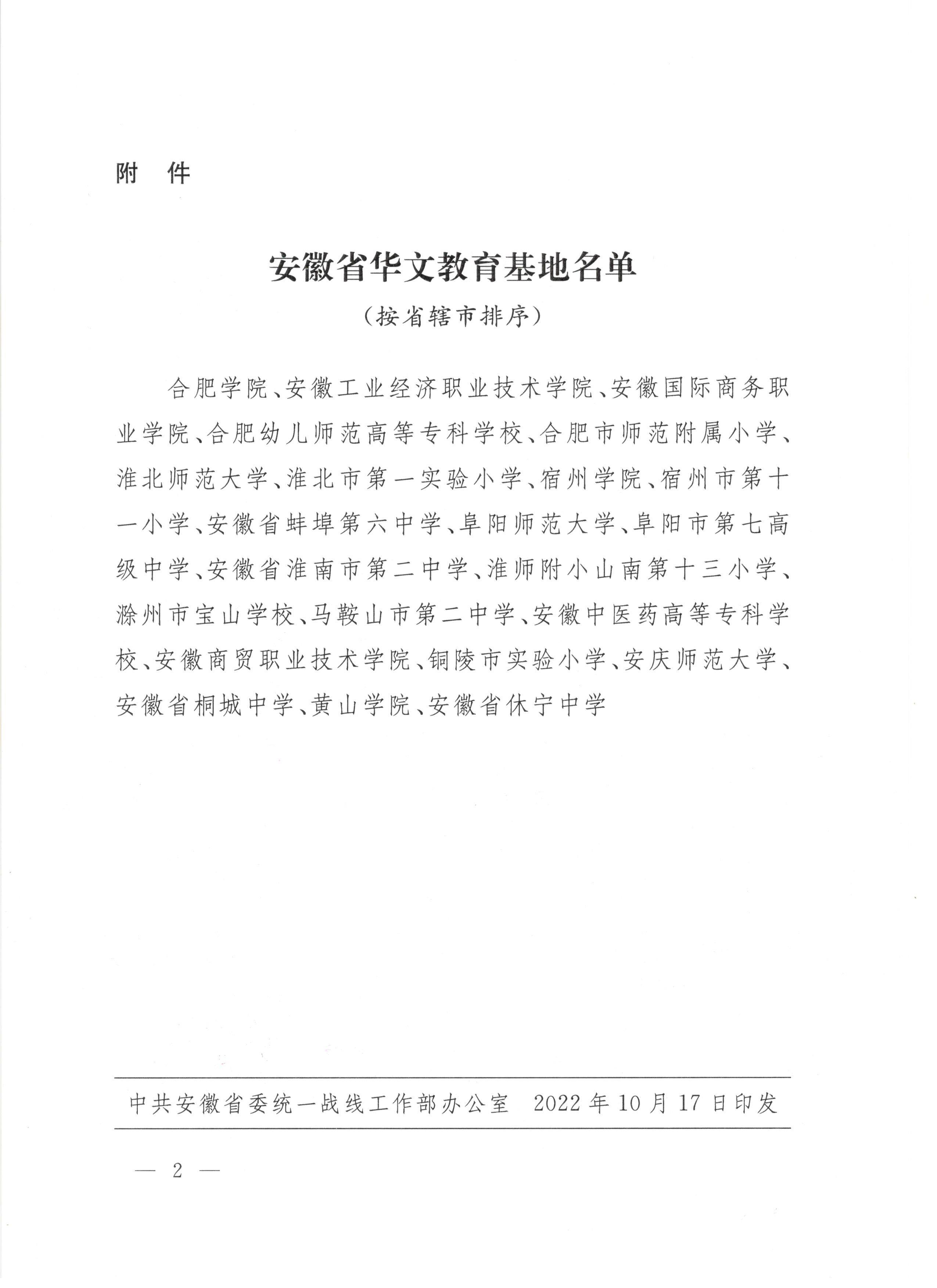 近日,安徽省华文教育基地授牌仪式在合肥市举行。省委常委、统战部部长张西明出席为首批基地授牌。省委统战部、省侨办和省教育厅负责同志参加授牌。经过评选和考察,我校获批成为首批安徽省级华文教育基地。