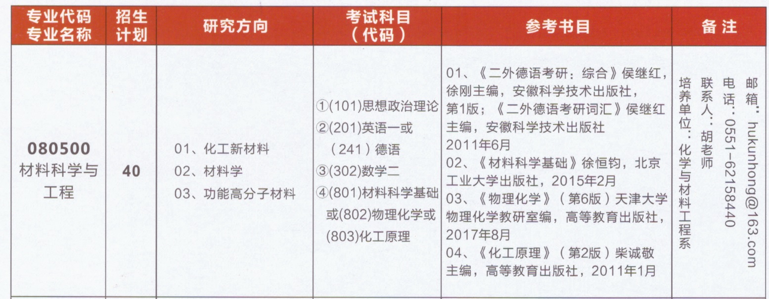 合肥学院材料科学与工程一级学科硕士点招生简章