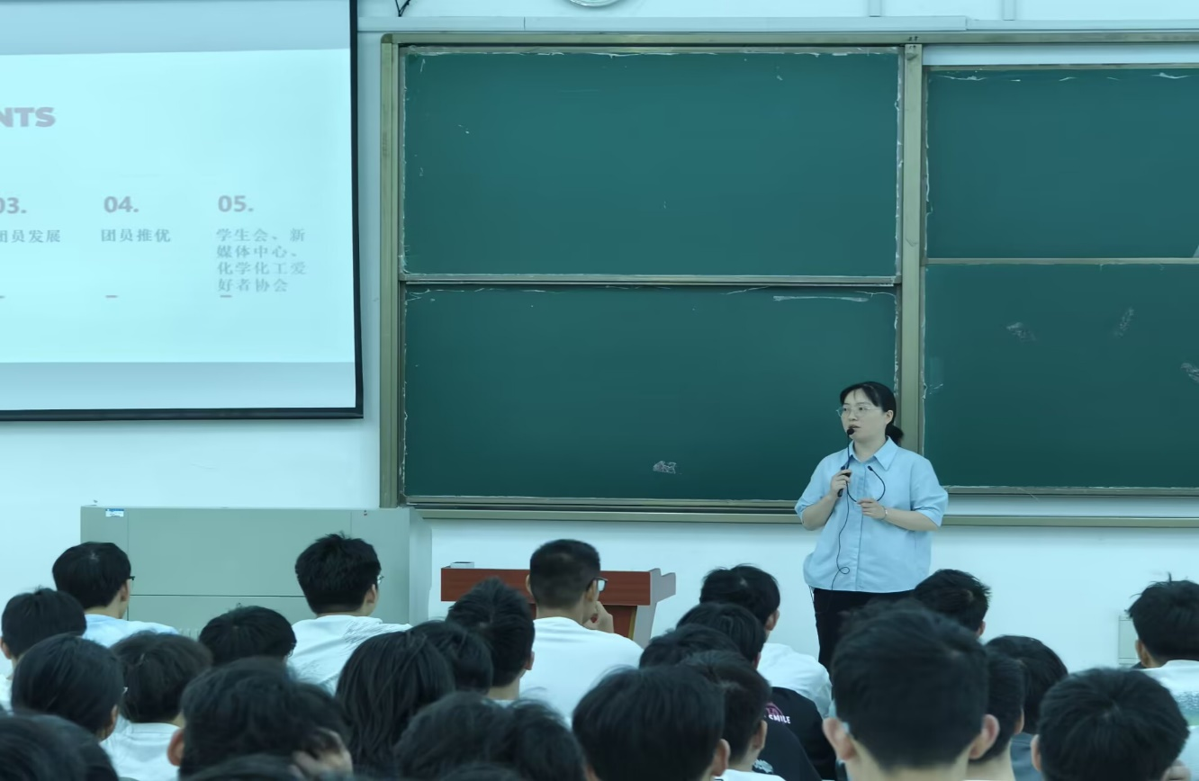 9月13日上午10点,能源材料与化工学院在生化楼1JT和2JT教室举办了2025级新生社团、学生会情况介绍会。学院老师戴路、唐静及各学生组织代表和全体2025级本科新生参会。