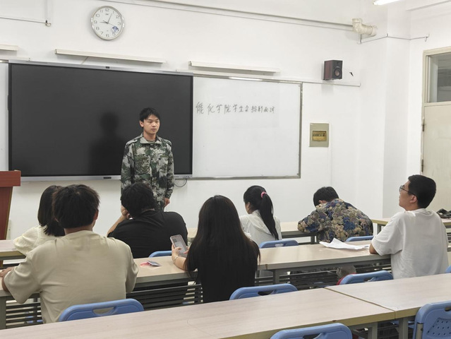 面试过程中,新生们展现出饱满的热情与良好的精神状态:多数同学提前准备了详实的自我介绍,不仅清晰阐述个人优势,更能结合对目标部门的认知,表达未来参与学生工作的规划与期待;面对面试官提出的“如何处理工作与学习冲突”“若负责某类活动会如何策划”等问题,新生们或条理清晰地分析,或结合实例展现思路,充分彰显了能化学子的综合素养。各部门面试官秉持公平、公正、公开的原则,在严格考核的同时,也耐心为新生解答部门职能、工作内容等疑问,现场氛围既严肃有序,又不失亲切互动。