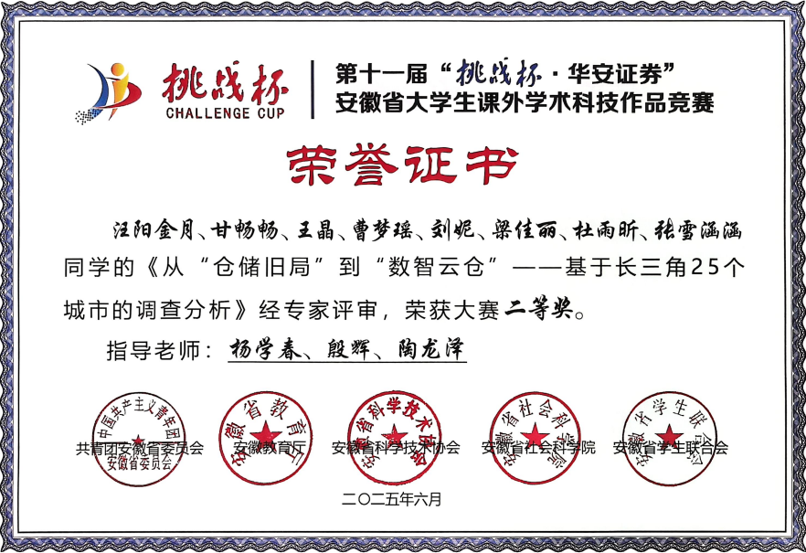 中心教师指导学生在第十一届“挑战杯华安证券”安徽省大学生课外学术科技作品竞赛中荣获佳绩