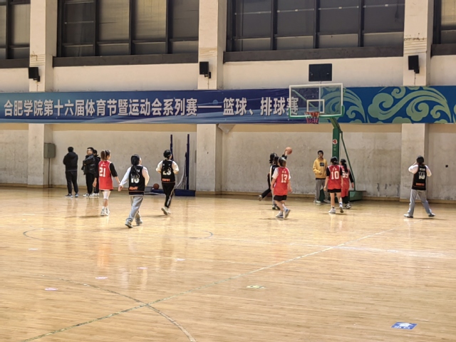 哨声回荡场馆耳边不乏鼓掌欢呼声双方队员摩拳擦掌在你追我赶中运球、投球等队员们一个箭步完成一次完美的投篮。队员们不骄不躁脚踏实地继续比赛。经过休息与战术调整以及互相拥抱鼓励下半场大幕拉开夜晚虽有疲倦但场上依旧热烈。在裁判的一声声哨响中比赛进入结尾。最后我院惜败。