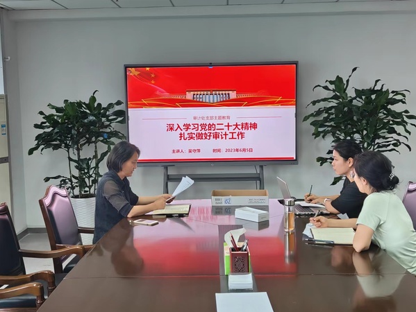 5月29日,支部召开会议,传达学习习近平总书记主持召开二十届中央审计委员会第一次会议精神,提高了对新时代新征程审计工作的理解与认识。支部书记吴守萍领学了《习近平著作选读》第二卷、《习近平新时代中国特色社会主义思想专题摘编》节选内容。会上还进行了“三问”研讨,围绕 “过去学得怎么样、现在干得怎么样、将来打算怎么办”,进行了深入讨论。