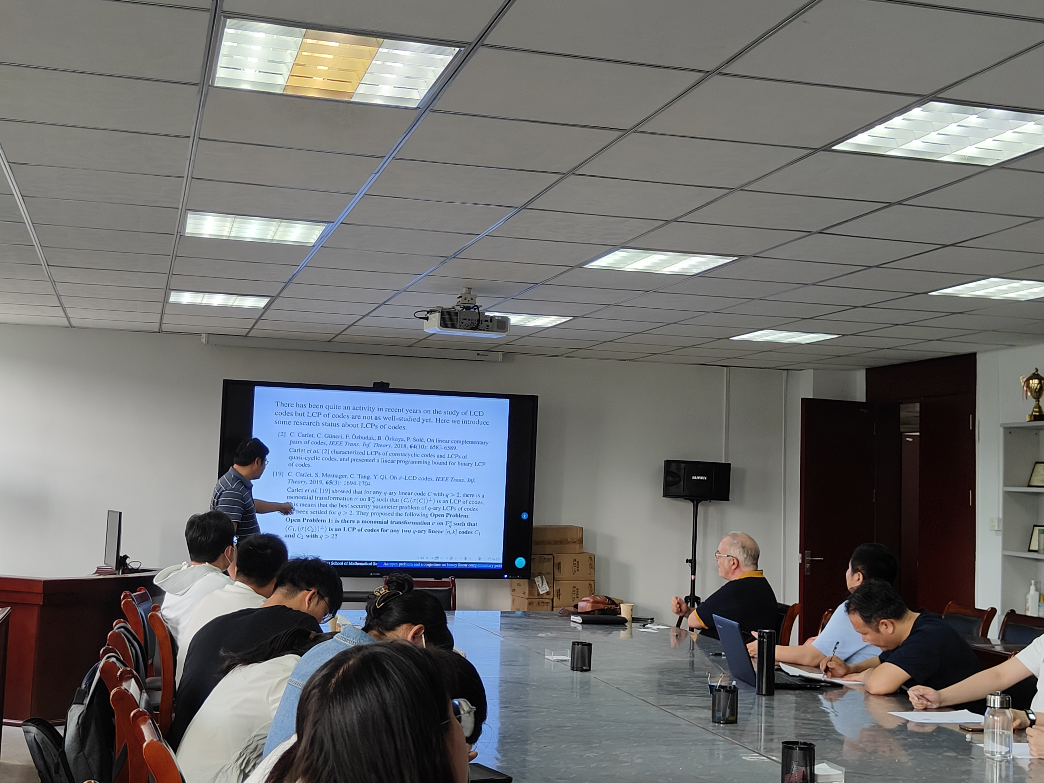 此次报告解决了一篇文献的四个公开问题。首先,施敏加教授以LCD码为切入点引申出LCP码,介绍了LCP码的概念及相关性质,并分析了LCP码的研究现状。随后,重点对“是否存在域上的线性变换使得任意两个二元线性码是LCP码”这一问题进行了深入剖析,提出猜想并通过矩阵进行验证。