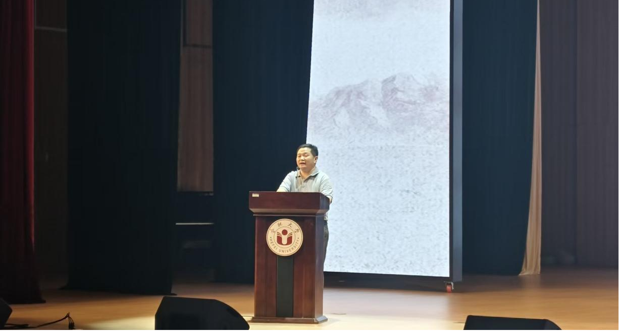 典礼伊始,余海峰院长代表学院发表致辞,向怀揣梦想踏入校园的2025级新生表示热烈欢迎。他在讲话中深情回顾学院发展历程:从最初的数学教研室,逐步发展成为拥有学科体系完善、师资力量雄厚和科研成果丰硕的特色学院,让新生们对学院的综合实力与深厚底蕴有了全面且深刻的认识。针对新生未来的大学学习,余海峰院长鼓励同学们沉下心来钻研数学理论知识,筑牢专业根基,同时要紧跟时代步伐,密切关注人工智能、大数据等前沿领域的发展动态,努力实现理论与实践的深度融合。