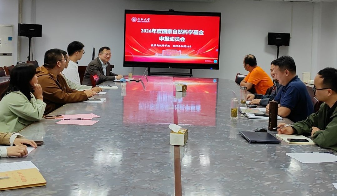 2025年10月14日下午,数学与统计学院在36栋305会议室举办国家自然科学基金撰写辅导会暨2026年国家自然科学基金申报动员会,为提升数学与统计学院教师的国家自然科学基金撰写能力和申报热情,特邀安徽大学汪毅教授作南艳湖大讲堂学术讲座:国家自然科学基金写作体会。报告由数学与统计学院院长余海峰主持, 副院长闫晓辉、李宁以及部分青年博士参加了此次报告会。