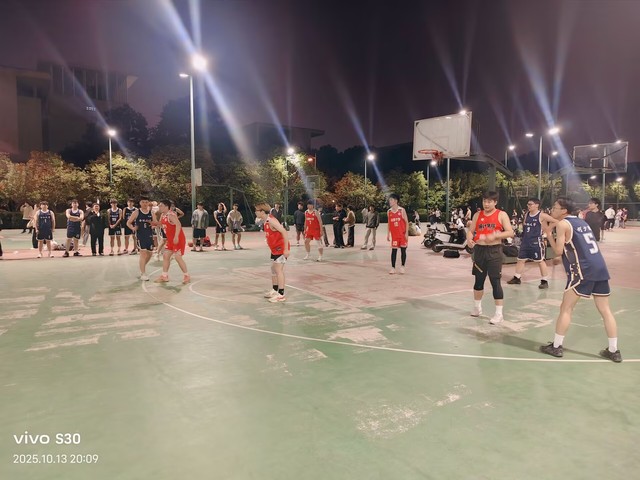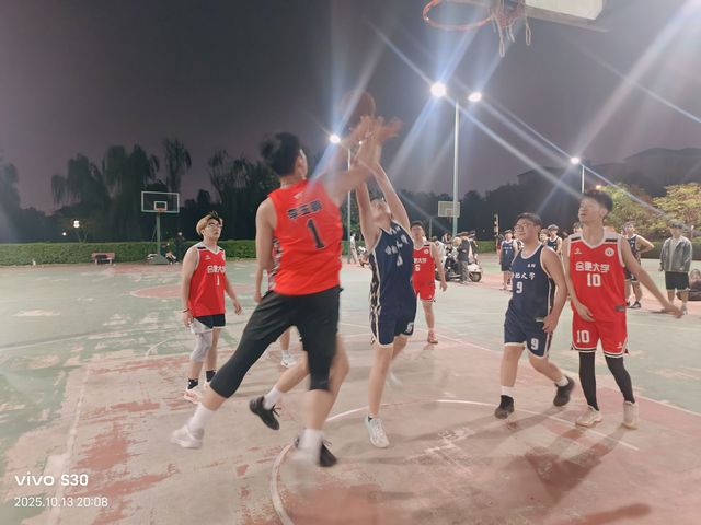 1013日晚,场外的秋风已然带上了凛冽的寒意,像清凉的泉水,无声地漫过街道。路灯的光晕在寒风中显得孤寂而清冷。然而,篮球场上却完全是另一番天地。汗水砸在滚烫的地板上瞬间蒸发,肌肉的碰撞声、球鞋的摩擦声、观众的呐喊声,汇聚成一股灼热的气浪,将秋夜的寒凉彻底隔绝在外。一场精彩的男篮赛事在一号篮球场火热展开,对战双方分别是生物院男篮设计院男篮。生物院与设计院男生篮球联赛在此上演巅峰对决。经过60分钟激烈争夺,生物院66:29击败设计院,取得本次比赛胜利。