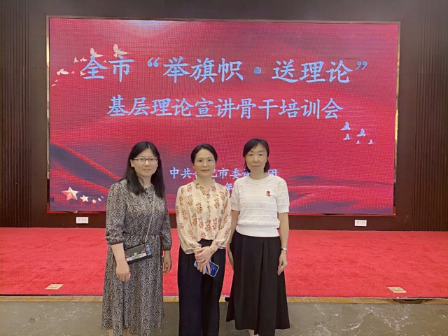 为深入学习贯彻习近平新时代中国特色社会主义思想和党的二十大精神,提升基层理论宣讲员宣讲能力,2023年7月6日上午,合肥市委讲师团组织召开全市“举旗帜·送理论”基层理论宣讲骨干培训会。马克思主义学院副院长苏冰黄莹莹和宣传部万昭莹老师参加。