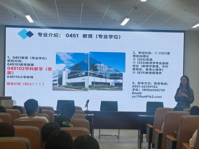 本次宣讲会得到淮南师范学院马克思主义学院大力支持让更多学生了解我院学科建设和研究生招生工作,为更多优秀学生报考我院打下坚实的基础(马克思主义学院)